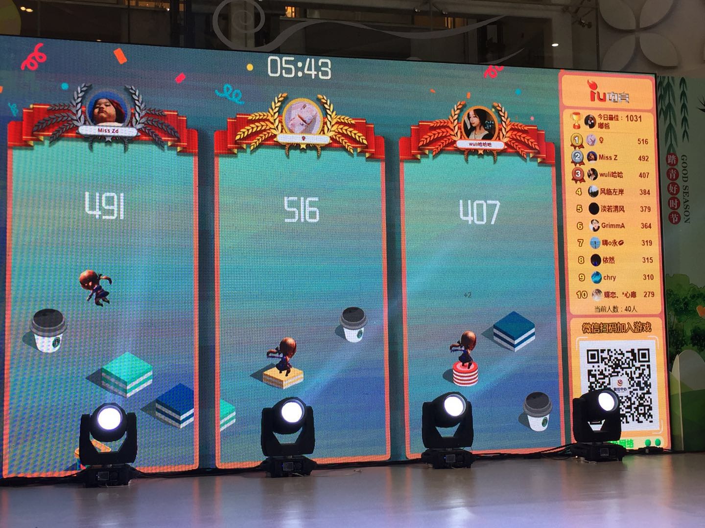 答:我们的游戏在每一局结束后,都会根据得分进行排名。因此,您可以按照规划的比赛时间点进行比赛,其余时间给顾客试玩热身;您也可以先组织预赛,选拔出种子选手,然后进入复赛、决赛。各种比赛形式都是可以很灵活地操作,关键看哪种方式适合您。